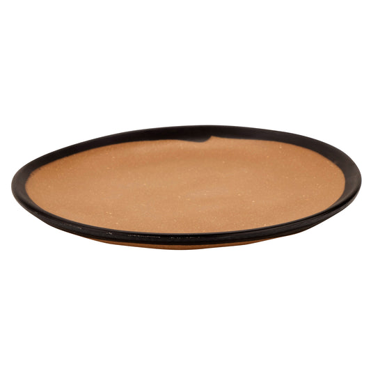 11" White with Black Trim, Enamelware Melamine Round Dinner Plate, G.E.T. Settlement Bistro (12 Pack)