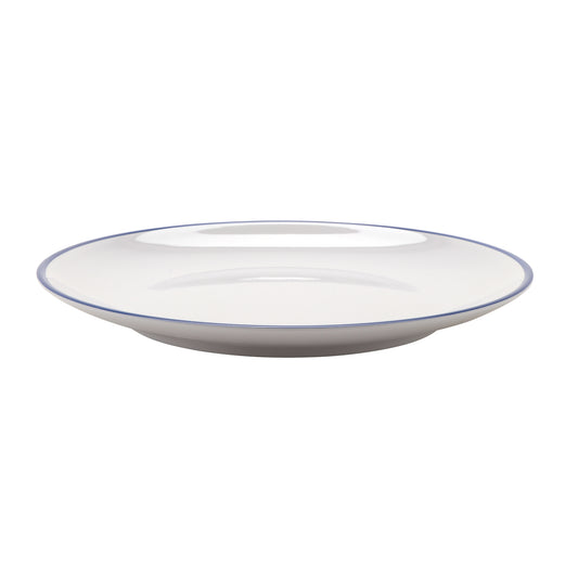 11" White with Blue Trim, Enamelware Melamine Round Dinner Plate, G.E.T. Settlement Bistro (12 Pack)