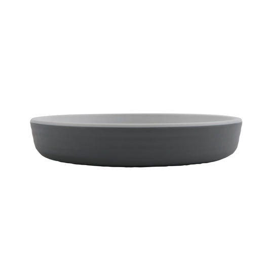16" x 12" Melamine Oval Platter, Gray Matte inside/ Black Matte outside, GET. Roca.
