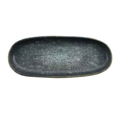 14" x 10" Melamine Oval Platter, Gray Matte inside/ Black Matte outside, GET. Roca.
