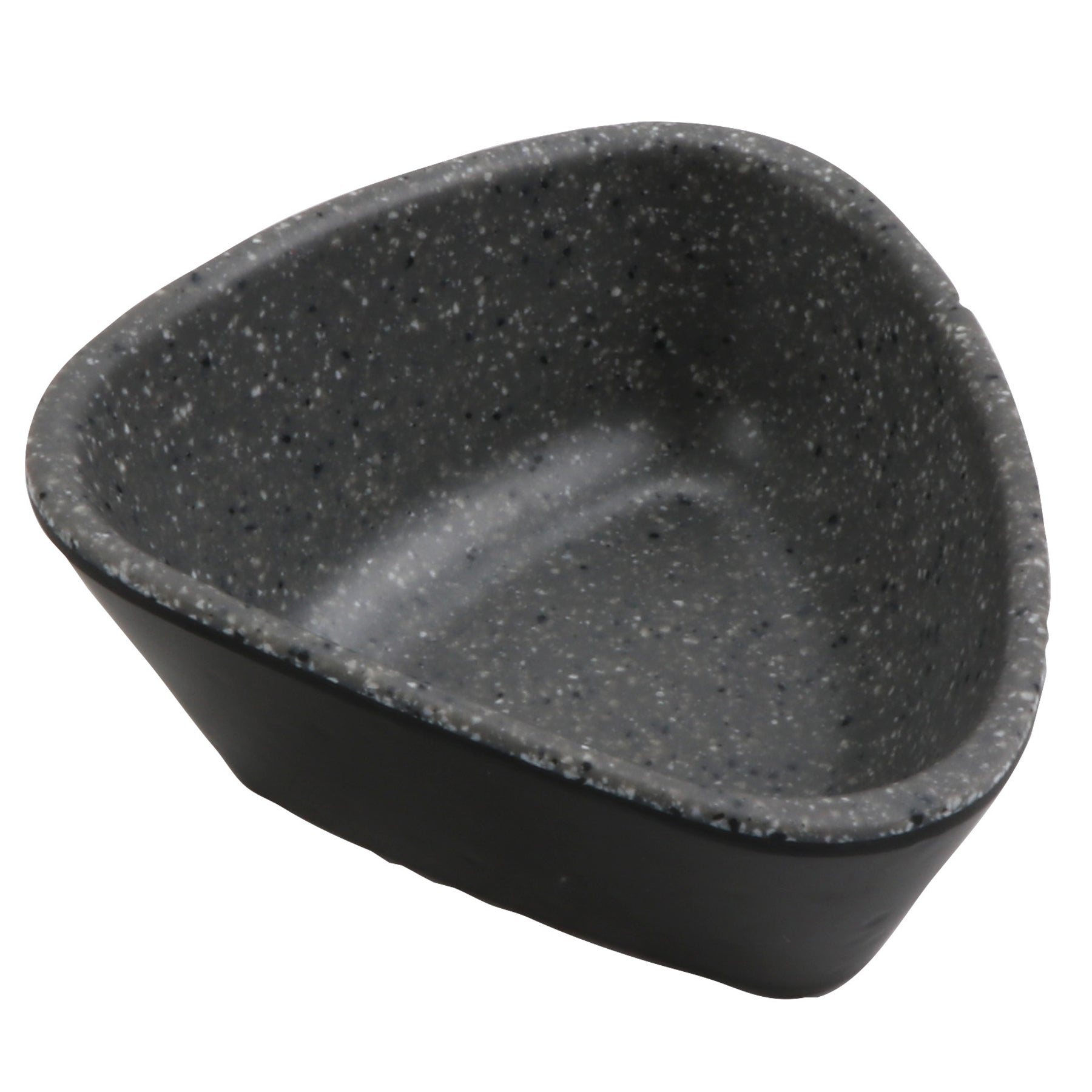3.5 oz revive stone grey/black triangle melamine ramekin with organic texture, 3.69"L x 3.44"W x 1.63"H, GET, cheforward