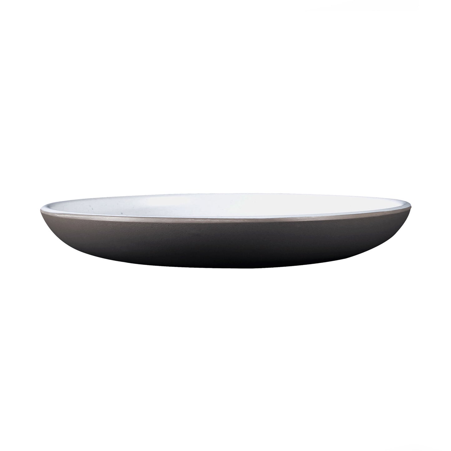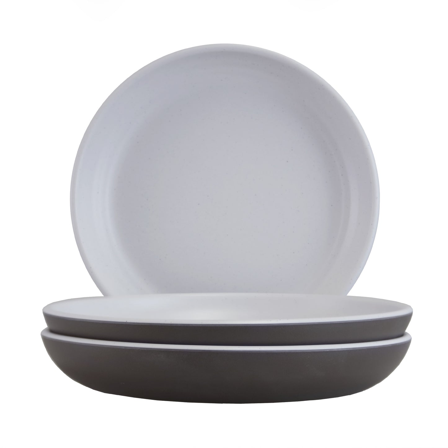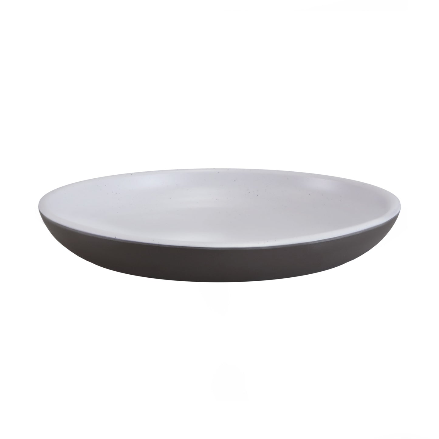 Melamine Round Coupe Plate - White Speckle Inside, Chocolate Outside