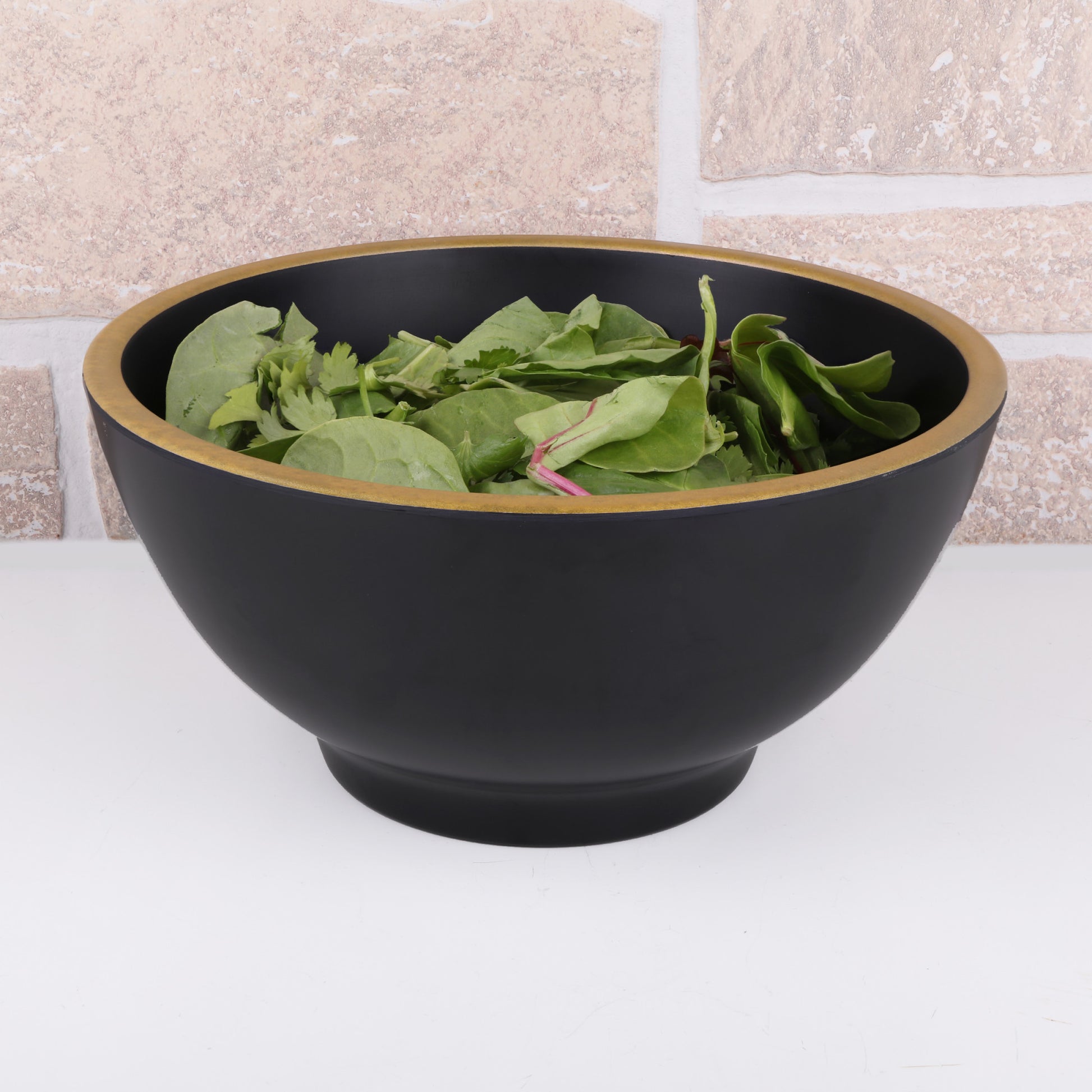 Melamine Round Bowl - Black w/ Gold Decal