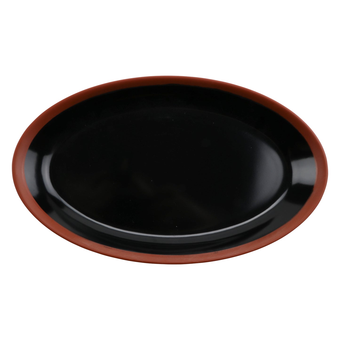 11" balance shiny black/matte terra cotta oval melamine platter (medium), 11"L x 6.5"W x 1.1"H, GET, cheforward