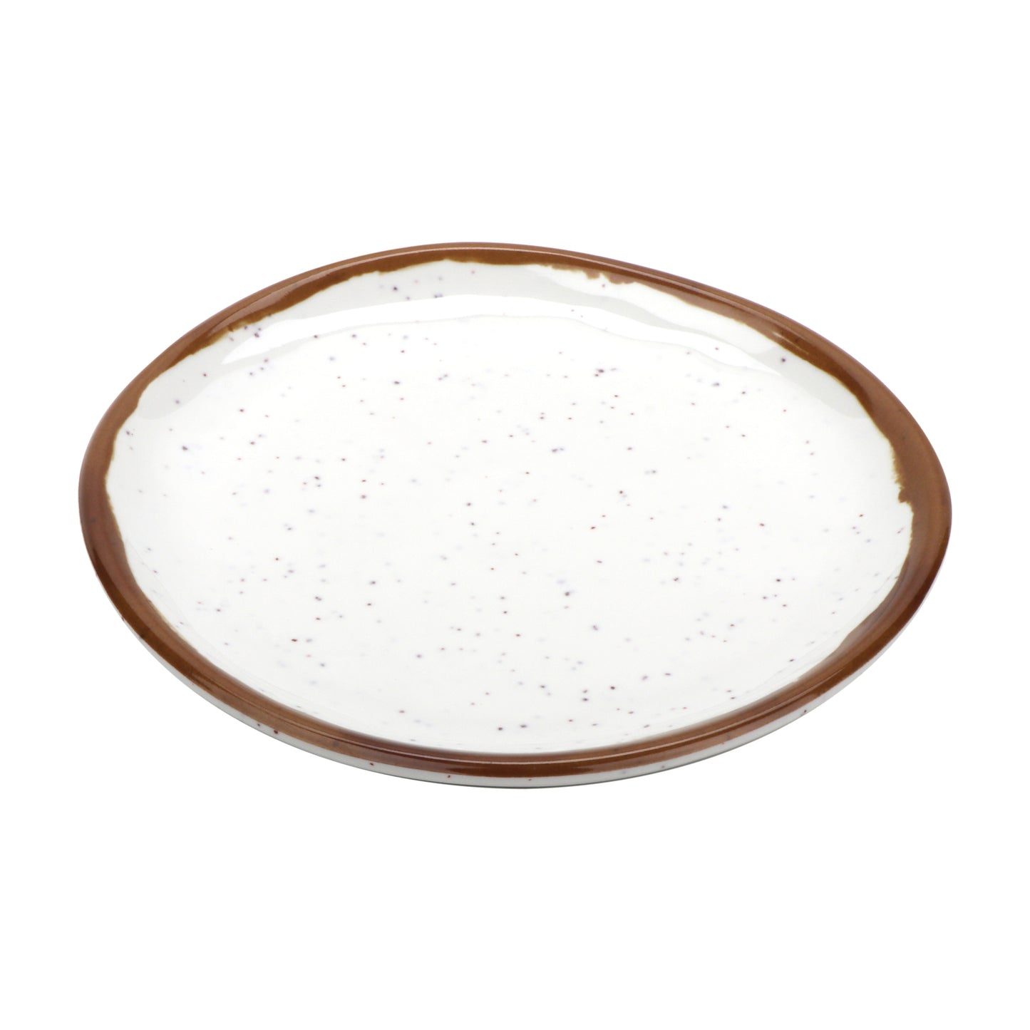 Organic textures, cream base with brown speckles and seemingly hand-painted brown rim offer ideal plating for a wide variety of menu items.