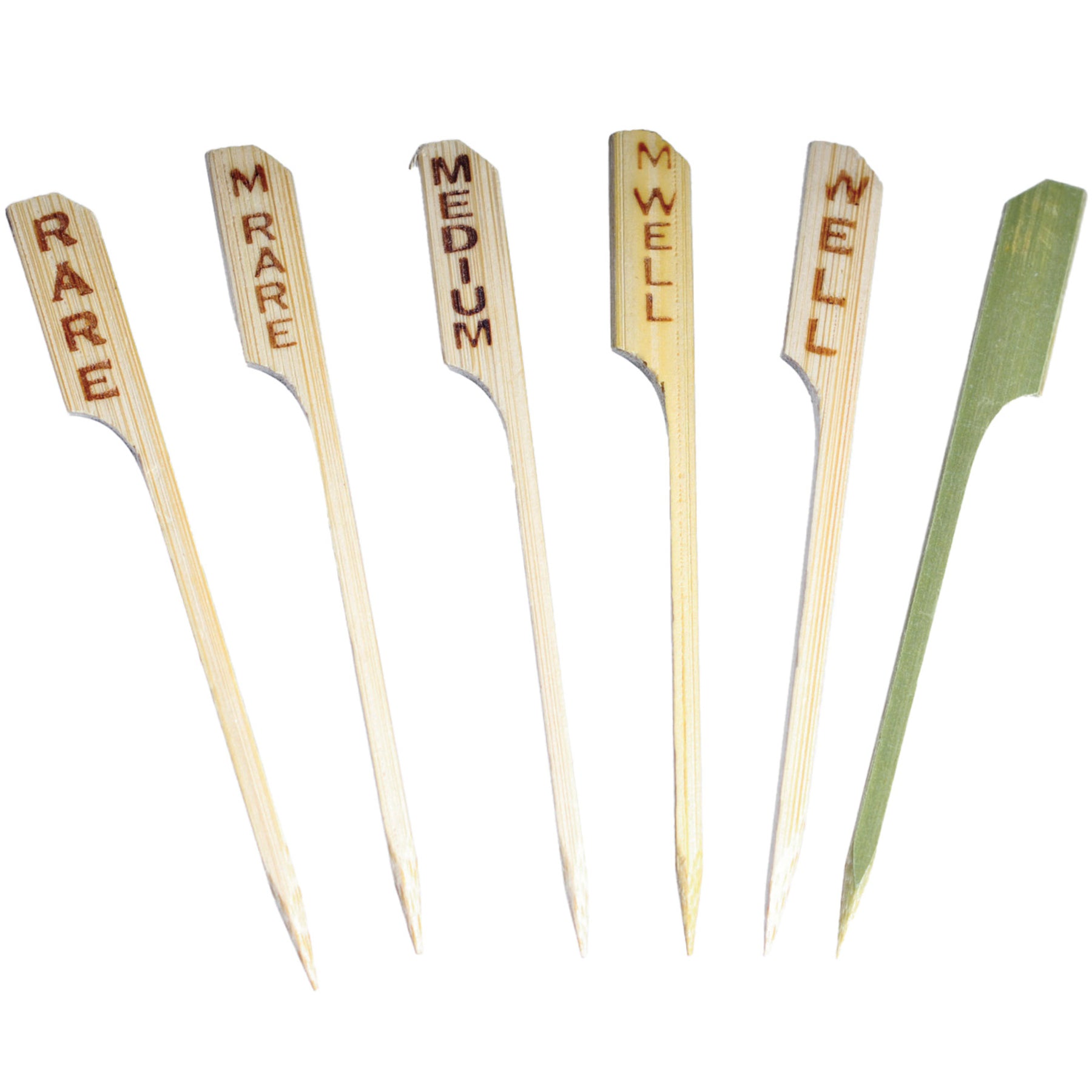Medium Rare Bamboo Steak Marker, Length: 3 1/2", Width: 3.0mm, Gauge: 2.8mm, Width of Head: 1cm, 100 pieces per Bag.