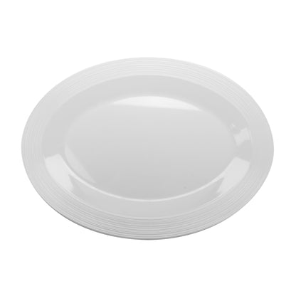 18" x 13" Melamine, White, Textured Rim, Oval Platter, G.E.T. Minski