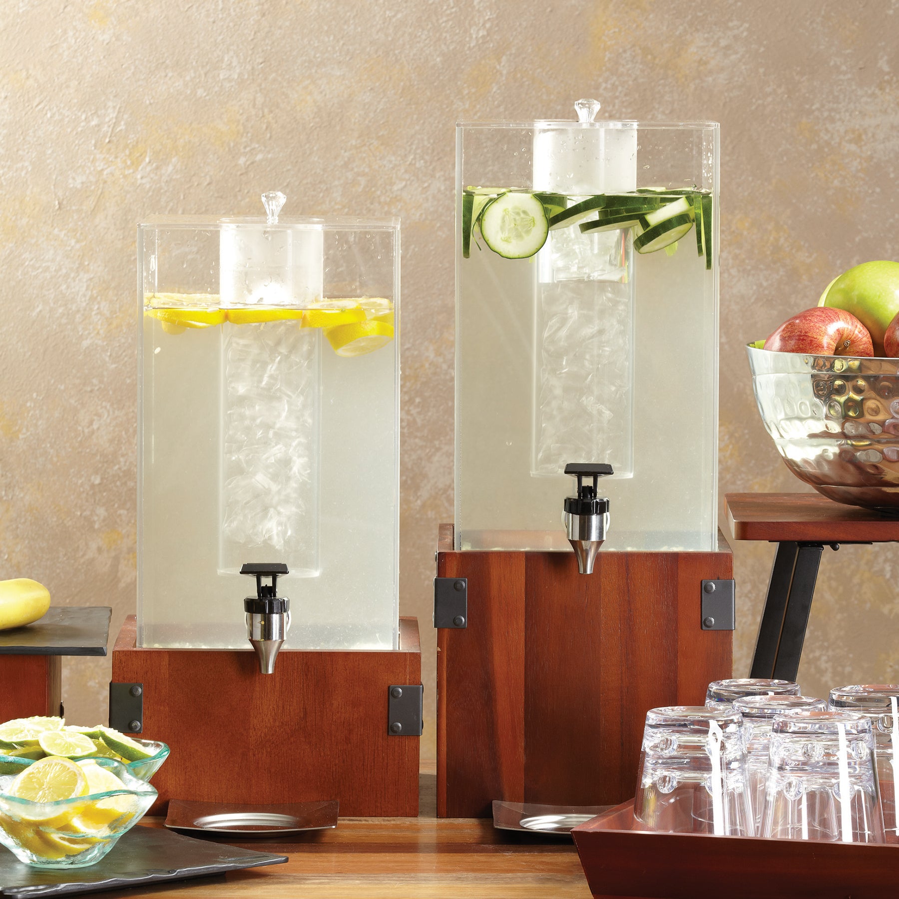 9.5" Square Wood Riser with Metal Brackets for Acrylic Juice / Beverage Dispenser, 5" tall (fits DISP-3)